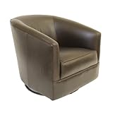 For maximum utility and comfort with gorgeous art-deco style, the Pinzon Roxbury chair is great for any room in the home. The chair both swivels and glides, creating the perfect "twist." The Roxbury features cushions with 1.9-density foam, which translates to medium firmness for great support and comfortable give. Upholstered in 100-percent bonded leather, the chair offers timeless comfort. Its solid hardwood frame has bolt-in construction for durability and longevity. The Java-brown finish on the legs beautifully complements the chocolate body. Overall, it measures 25 inches wide by 30 inches deep by 27 inches high. Made in the USA, it arrives fully assembled for immediate enjoyment and needs only spot cleaning for care.