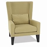 (More customer reviews)I was a bit wary of this chair since it was so cheap. Don't expect the greatest quality, but the chair is fairly comfortable. The high back makes it look fancy and it comes with a matching back pillow. The biggest complaint I have is that the color does not look like the picture. It's more of a wheat color, no green tint at all so I was a bit disappointed since it's not as coordinated with other things in the room.