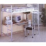 TWIN- LOFT STYLE BUNK BED, ALSO SERVES AS A COMPUTER WORKSTATION AND DESK COMBO. THIS SPACESAVER FEATURES A SLEEK SILVER, TUBULAR DESIGN INCLUDING A DESK WITH OAK FINISH & THREE TIERED STORAGE SHELVES. CASTER CHAIR IN SAME TUBULAR STYLE. MEASUREMENTS:BED-78-1/4"L x42"W x72"H CHAIR-21"W x 17-3/4"D x30-1/4"H ......PLEASE NOTE: WE ONLY DELIVER THIS ITEM TO: FLORIDA, GEORIGA, ALABAMA, TN, KY, OHIO, MOST OF WISC & MICH, ILLINOIS, INDIANA, SO & NO CAROLINA, VA, WEST VA, MARYLAND, & DC, DEL, NEW JERSEY, PA, CT, RHODE ISLAND, MASS, NEW YORK, (NOT MANHATTAN) NOT SURE IF WE DELIVER TO YOU, SEND US YOUR ZIP[ CODE. WE ONLY DELIVER TO THE FOLLOWING AREAS...SORRY