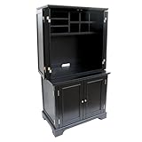 Home Styles Bedford Compact Cabinet Hutch is constructed of hardwood solids and engineered woods in a rich multi-step Ebony finish. Cabinet features include file drawer that accommodates letter or legal size files. Features:Constructed of hardwood solids and engineered woodsRich multi-step Ebony finishFile drawer that accommodates letter or legal size filesKeyboard with ball bearing drawer glides that fully extendAccommodates printerCPU Compartment - with an adjustable shelfHutch features three wire management holes, 2 small three slotted pigeon hole organizers, and three slot letter organizer-slotsSpecificationsDesk size: 38.5"W X 23.75"D x 32"HHutch size: 38"W x 19.75"D x 38"HFile drawer: 21.25"W x 18.5"D x 10"HKeyboard: 32"W x 15"D x 1.75"HPrinter shelf: 23.25"W x 20.75"D x 8.25"HCPU compartment: 9.75"W x 21"D x 18.5"HSmall storage drawer: 7.75"W x 14.5"D x 2.25"HUpper 3 slot letter organizer slots: 13.25"W x 11.75"D x 12.5"H2x3 Small pigeon hole organizers: 6.25"W x 9.75"D x 20.5"H