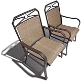 This handsome and versatile set of two sling chairs complements the Rawley smoke glass dining table or stands on its own to turn porches and patios into relaxing retreats. With frames constructed of brown powder-coated aluminum, the chairs are designed for use in the elements. Ideal for use in outdoor furniture, cast aluminum is heavier and sturdier than standard aluminum but much lighter than cast iron. It's also quite resistant to chipping, fading, and rusting. The seat and back are made from tightly woven water-resistant textilene fabric in dark and light browns, creating a medley of earthy hues. An attractive geometric design on the chair's back is complemented with rounded arms and feet. Each chair measures 37 inches high by 27-1/2 inches deep by 24 inches wide; assembly is required. They will hold up to 300 pounds, and they weigh 20 pounds each.